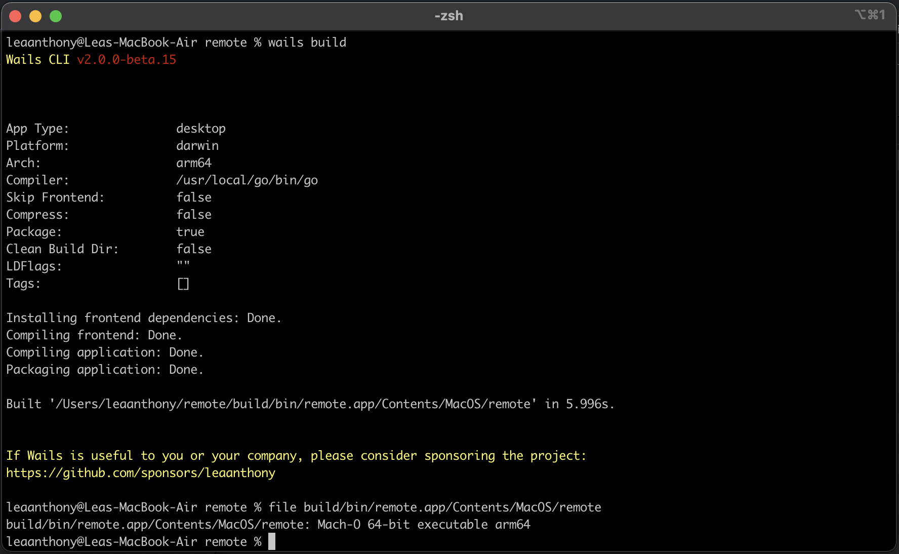感谢Mat Ryer的惊人支持,Wails 项目现在支持 M1 原生构建: